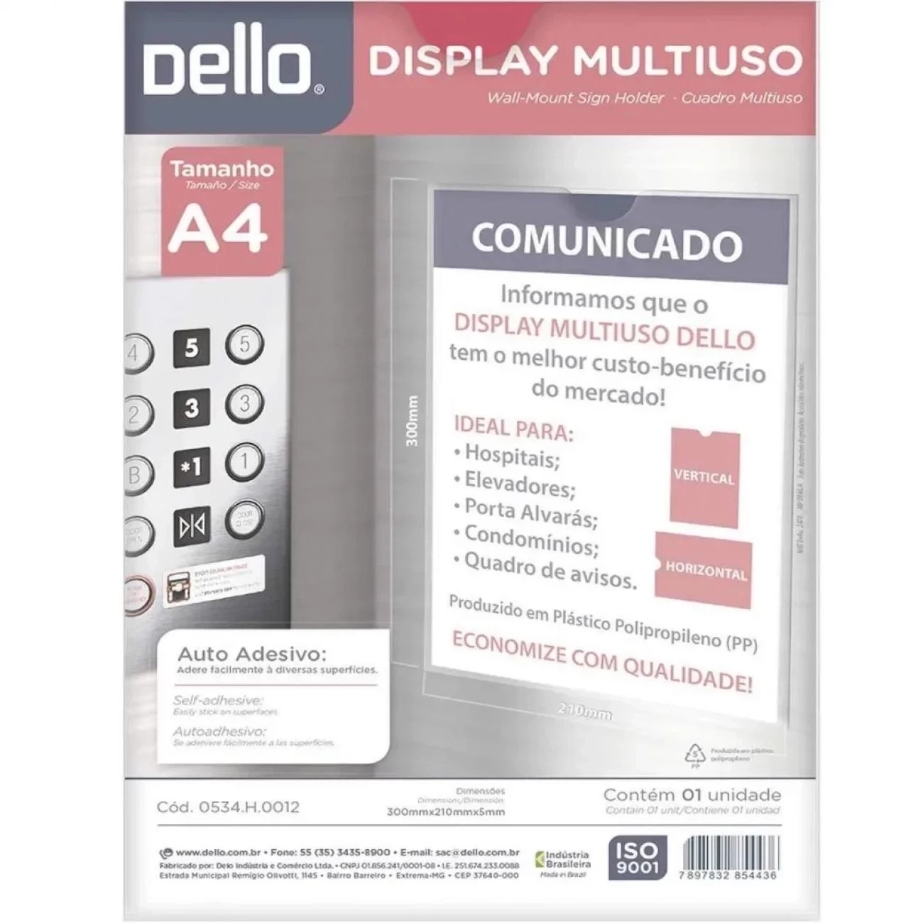 Em elevadores, murais, quadros ou outras áreas de acesso comum, o Display Multiuso Cristal A4 Dello cumpre com excelência a tarefa de tornar visíveis os avisos e notificações de empresas e estabelecimentos comerciais em geral. Com ele, o acesso às informações se torna mais fácil e prático.